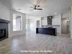 Step inside to 10-foot ceilings and ceramic woodgrain tile throughout the common areas, giving the home a spacious, contemporary feel. The modern kitchen features quartz countertops, a large walk-in pantry, and stainless steel appliances, making meal prep effortless. The living area includes a gas fireplace, ideal for cozy evenings with family or friends.