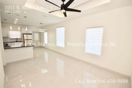Welcome to 1001 Abbey, a premier living destination in Edinburg, TX. This stunning 3-bedroom, 2-bathroom apartment offers a spacious open floor plan with vaulted ceilings, modern fixtures, and high ceilings that create an airy and inviting atmosphere. The kitchen is equipped with stainless steel appliances, including a refrigerator, microwave, and stove/oven, and the convenience of an in-unit washer and dryer. The apartment also features a walk-in closet, a comfortable living room, and ceiling fans for added comfort. As a resident, you'll enjoy the security of a gated property, the convenience of covered parking, and the luxury of 24/7 maintenance support. The property is pet-friendly (with breed restrictions), and lawn care, water, and trash services are included in the lease. This apartment is all-electric, with central AC for those hot Texas days. Please note, this is a no-smoking property. With a 12-month lease, make 1001 Abbey your new home today.