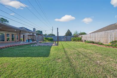 Recently remodeled Katy home features new windows, new AC, and a custom wrought iron/glass front door. Enjoy Italian tile floors, a remodeled kitchen with granite, and upgraded bathrooms (double primary shower, glass secondary shower). The oversized backyard boasts a 900 sq ft covered patio, outdoor grill, fire pit, 250 sq ft shed, and a 22KW whole-home generator. Garage has epoxy flooring and AC. Zoned to top KISD schools with easy highway access.