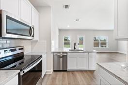 The Rio Grande floor plan is a charming three-bedroom, two-bathroom home with an inviting ambiance and functional layout. Its one-story design boasts irresistible curb appeal and well-manicured landscaping. Inside, airy, open living spaces seamlessly connect the chef-ready kitchen, spacious living room, and inviting dining area. The master suite serves as a sanctuary with a generously sized bedroom, en-suite bathroom and expansive walk-in closet. This home features our premium upgrades at no additional expense, including recessed lighting, wood-style vinyl plank flooring, Wi-Fi-enabled garage door openers, and more.