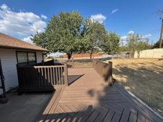 No carpet. Single level floor plan. Huge back yard and large deck out back. Converted garage can be used as an extra bedroom or family room. Updated appliances. Corner lot. Close to shopping and I-35.