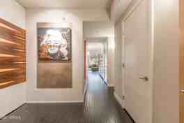 GORGEOUS Luxury condo, views on the 6th floor in the heart of Scottsdale's Entertainment District. 3 month minimum Optima Camelview. Fully interior designed furnishings including Linens, Barware. All you need is your suitcase! Walls of glass, 1 BR + plus open optional den/office area features a custom built in Murphy Bed for guests or use as office. Walk across to Fashion Square Mall, Harkins Theatre, Ocean44, Nobu, Francine, Toca Madera upscale restaurants. Old Town, Art Galleries etc. No need to drive! Rarely available 6th floor. Abundance of Storage! Hardwood flooring thruout, Travertine Tile in both Bathrooms. Interior designed. Viking chef's kitchen. Auto remote Blinds. Golf putting green, 2 outdoor pools, + huge indoor pool/spas, locker/steam sauna, GYM, Basketball/Racquetball. 10+