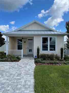 For Lease - or for sale - Welcome to the Captiva, a bright, charming, modern cottage-style home designed with high quality features providing comfort, functionality, and a relaxed lifestyle. The Captiva offers incredible indoor-outdoor living with its spacious front and rear porches. Open kitchen with large eat-in bar and abundance of storage with Oversized windows throughout. Located in Lakeshore, a serene Simple Life Community in Oxford, Florida, this home sits on Lake Andrew with conservation views, right on the western edge of The Villages. Lakeshore blends the charm of a hybrid cottage-style community with a mix of site-built and manufactured homes, offering something for everyone. The community boasts an impressive range of amenities, including: A state-of-the-art clubhouse, Multi-purpose fitness room, Swimming pool and pickleball courts, Scenic walking trails and a fishing pier, Relaxing fire pit and garden area, Dedicated dog park …
