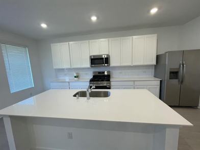 TX 380 near 75 N Central Expressway. This brand new house is with open floor plan, tastefully decorated with modern light fixtures, easy maintenance LVP floor in kitchen and all living areas. Dedicated office provides a comfortable working-from-home environment and can be a flex room or a gym area. Generous size master ensuite has great size walk-in closet and walk-in shower with ample space for extra storage. Huge kitchen with island has beautiful hardware, Quartz countertop, SS appliances and with a refrigerator included. Cozy covered back patio and nice sized backyard is a great setting area and easy to maintain. This home is with full of the high technologies, equipped with energy efficient and ecofriendly tankless water heater, full sprinkler system and high speed internet. The laundry also has washer and dryer ready for use. Walking distance community pool and easy access to downtown McKinney, Costco, HEB and Buc-ee's.
