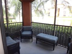 Beautiful turnkey furnished condo located in Serenata. This former model unit is located on the first floor and has three bedrooms, two bathrooms, laundry room, open floor plan and split bedrooms. The primary bedroom has a king sized bed, large walk in closet and an on suite bathroom with a tub/shower combination. The guest bedrooms each have queen sized beds and walk in closets. The guest bathroom has a tub/shower combination. The kitchen has a closet pantry, plenty of counter space for food prep and cooking and a breakfast bar. Separate living room/dining room combination. Screened in lanai looks out over a lake. Serenata has many amenities including gated security, heated community pool, tennis courts, 24 hour fitness center, clubhouse with billiard room, library and full kitchen, valet trash pickup as well as a car wash area for your convenience. No pets allowed. Will not last long.