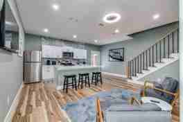 Brand-new, fully furnished two-story duplex located in the desirable Ellington Park neighborhood. This home features a sleek modern kitchen with stainless steel appliances, quartz countertops, and crisp white cabinetry. Enjoy beautiful hardwood floors throughout, complemented by designer-selected paint and decor for a clean and stylish look.
