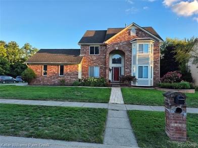Step into this gorgeous custom-built brick colonial, offering 4 spacious bedrooms, 2.5 baths, and a desirable side-entry 2-car garage. A grand 2-story foyer welcomes you inside, where French doors open to a light-filled library/office with a charming bay window—perfect for working from home. The home features a formal dining room with hardwood floors and an open kitchen designed for both style and function, complete with maple cabinets, double ovens, a built-in rangetop, and ceramic tile flooring. Enjoy casual meals in the breakfast nook, with a nearby laundry room for added convenience. The large living room is a true focal point, showcasing a beautiful slate and stone gas fireplace and plenty of space for gatherings. Upstairs, the primary suite offers a vaulted ceiling, bay window, walk-in closet, and a relaxing ensuite bath with a separate shower and soaking tub. The finished basement adds valuable living space with a comfortable rec room featuring Berber carpet, abundant storage, and emergency egress stairs. Outside, the nicely landscaped corner lot provides great curb appeal and includes a deck and brick paver patio, ideal for outdoor entertaining. Additional perks include all appliances. Located in a beautiful family-friendly neighborhood of newer homes, this property is immaculately clean and ready for immediate occupancy. Move right in and enjoy everything this home has to offer!