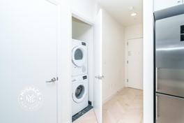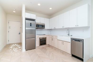 Explore refined living in this 2 Bed / 2 Bath at 144 West St in Greenpoint, Brooklyn. This boutique residence is nestled along the vibrant East River Waterfront, offering spacious layouts and elegant interiors. With floor-to-ceiling windows and warm oakwood floors, the unit is filled with natural light and inviting design. The kitchen boasts custom ivory cabinetry, sleek white quartz countertops, and Bosch stainless steel appliances, while the in-unit washer and dryer add modern convenience. The bathroom is your private retreat with a deep soaking tub. This pet-friendly building is also conveniently close to the G train at Greenpoint Avenue, making your commute a breeze.