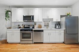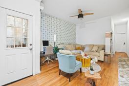 Introducing this renovated two-family townhouse in prime Ocean Hill, a pristine two-story home blending classic Brooklyn charm with modern flair. Beautiful hardwood floors and tall sash windows highlight the 2-bedroom, 1-bathroom owner's duplex. A gated front yard and refined facade open into the foyer of the owner's duplex. The foyer leads to an elegant living, dining, and kitchen area featuring a stylish accent wall. The single-line kitchen is appointed with marble countertops, a marble subway tile backsplash, custom cabinetry, and a suite of high-end stainless steel appliances. Both bedrooms are spacious with private closets, and the bathroom showcases modern fixtures and finishes. Off of the living room is a private backyard for outdoor entertainment. Nestled on a tree-lined street in Ocean Hill, 1302 Herkimer Street is just moments from local restaurants, cafes, bars, and shops. It also has convenient access to the LIRR and the A/C/J/Z/L subway lines.