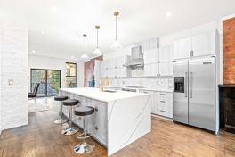 4 BEDROOM TRIPLEX WITH BONUS ROOM Experience refined Brooklyn living in this stunning four-bedroom, three-and-a-half-bath triplex perfectly positioned on the border of Bedford-Stuyvesant and Clinton Hill. Blending brownstone charm with modern design, this expansive residence offers high-end finishes, generous proportions, and multiple private outdoor spaces for comfortable everyday living and entertaining. The parlor level features an open living and dining layout that flows to a large private deck and backyard. The chef's kitchen is the centerpiece of the home, showcasing Viking stainless-steel appliances, Calacatta and Carrara marble countertops, a waterfall island, and custom oak cabinetry. Throughout the home, exposed brick and marble accent walls complement wide-plank hardwood floors and refined lighting, creating a warm, sophisticated atmosphere. Upstairs, the serene primary suite includes a decorative fireplace, walk-in closet, and a luxurious en-suite bath clad in marble with brass fixtures and a freestanding claw-foot soaking tub. Additional bedrooms are bright and versatile, and a spacious bonus room on the top floor offers flexibility for a home office, media lounge, or guest space. Each bath is beautifully finished with premium stonework and gold hardware, while a washer and dryer add modern convenience. Outdoor space includes a deck off the dining area and a private backyard ideal for relaxing or entertaining. Perfectly situated on a tree-lined street surrounded by neighborhood favorites, residents enjoy easy access to local gems like Milly's, Hart's, Bar LunAtico, and Clementine Bakery, along with beloved coffee shops, boutiques, and parks just blocks away. This home captures the very best of Brooklyn living-where timeless architecture, thoughtful design, and a vibrant community come together in one exceptional residence.