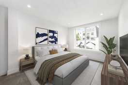 Introducing this brand new Bushwick condominium suffused with natural light, a chic 1-bedroom, 1-bathroom home graced with statement finishes that exude luxury and style. Features of this apartment include floor-to-ceiling windows, an in-unit washer/dryer, and a private balcony that can be used for urban gardening and enjoying morning and evening beverages. The home opens into a sun-splashed living, dining, and kitchen space. The living room leads out onto the balcony, while the kitchen is equipped with polished Caesarstone countertops, a matching backsplash, a built-in exhaust hood with custom paneling, an antique copper faucet from Brienza, and high-end stainless steel appliances from Fisher & Paykel and Blomberg. The bedroom has a huge closet, and the bathroom is adorned with Calacatta marble floors, a custom vanity with a vessel sink, and an elegant copper tile accent wall. The Melrose is boutique condominium made up of a trio of contiguous buildings with imported Greek Aluminco facades. Residents of The Melrose enjoy an open rooftop terrace with lovely neighborhood views. Located at the nexus of Bushwick and Bed-Stuy, The Melrose is just moments from a variety of restaurants, bars, cafes, and shops and around the corner from the M/J/Z subway lines.