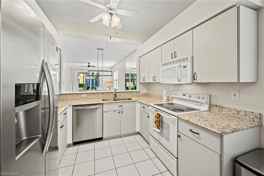 BUNDLED GOLF AVAILABLE: JANUARY & APRIL Available $6000. Off-Season $2500. This beautiful first-floor corner-unit condo in the desirable Heathermoor I building offers exceptional natural light and stunning views of Hole 1 of the Highland Woods Championship Golf Course. Its prime location places you closer than any other neighborhood in Highland Woods to the golf clubhouse, fitness center, tennis courts, pickleball courts, restaurant, resort-style pool, and cafe. A quieter neighborhood pool is located just north of the unit-visible from the lanai and only steps from your door-and is one of seven pools available throughout the community. The condo features two bedrooms and two bathrooms, including a primary suite with a queen bed, large flatscreen TV, walk-in closet, generous storage, and an en-suite bath, while the guest bedroom offers two twin beds, its own TV, and a large closet. A second full bathroom with in-unit washer and dryer is conveniently located in the hallway. The living room with TV, dining area, and fully equipped kitchen provide comfortable and effortless living, while the screened-in lanai offers peaceful golf course views. This rental also comes with an optional transferable Bundled Golf Membership, granting access to exceptional golf facilities, including a 50,000 sq. ft. aqua driving range tee with additional mat area, a 7,000 sq. ft. putting green, and an 11,400 sq. ft. chipping and putting practice area with three bunkers. The 18-hole championship course, designed by architect Gordon Lewis, is supported by PGA Professionals who offer extensive teaching and training programs. Dining options include The Grille Room and The Woods Pool Cafe. The community also features brand-new pickleball and tennis courts, including six dedicated pickleball courts. The 24-hour fitness center-newly built in 2016 and located on the second floor-offers innovative fitness and lifestyle programs. Highland Woods is a secure, gated community just three miles from Barefoot Beach and Bonita Beach and is minutes from exceptional restaurants, shopping, flea markets, attractions, and a fantastic farmer's market right across the street. A vast array of clubs and community events ensures there is always something to enjoy during your stay.