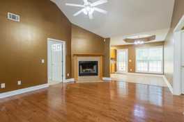 3 bedroom / 2 bath. Kitchen features stainless steel appliances, ceramic tile & dining area with view of great room. Great Room with fireplace & hardwood floors. Large laundry room with pantry. Split Plan. Main bedroom features walk-in closet, separate tub & shower. Covered patio overlooks fenced private yard. One car garage. Pets allowed upon owner approval & additional pet fee.
