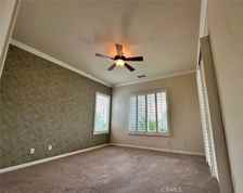 55+ Community of Trilogy at Glen Ivy, Laguna Model. Smart planned community with all the amenities you could wish for. Wood shutters throughout with an open kitchen and recessed lighting. Master bedroom with walk in closet and slider opening to covered deck overlooking the Gold Course, 9th & 10th fairways. Morning coffee and evening sunsets have peaceful views of the course and the mountains from the back and side patio areas. Calming fresh wall color, tile and plank flooring, ceiling fans and a 3rd room for office, guest room, etc.