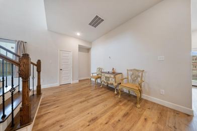 Welcome to Murphy Village, Missouri City's newest gated luxury townhome community, featuring 66 beautifully crafted homes designed for modern living. This never-lived-in townhome offers 4 bedrooms, 3.5 baths, and 10-foot ceilings with a spacious, open-concept main floor. Its elegant stucco and stone exterior is complemented by a fully fenced yard, lush landscaping, and a full sprinkler system. Built for durability and convenience, it includes an engineered rebar slab, concrete driveways, covered outdoor spaces, and a well-equipped garage with WiFi-enabled remotes. Thoughtful details like a mahogany wood front door, full-lite rear entry, and all-around gutters enhance its charm. Combining style and functionality, this home is a perfect blend of luxury and comfort.