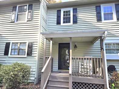 Welcome to a bright and comfortable 2-bedroom, 1.5-bath townhome that offers both convenience and a calm setting. Located close to Duke University, UNC-Chapel Hill, and Downtown Durham, this home places you within minutes of shops, restaurants, and entertainment while still giving you a peaceful place to come back to. The main level features generous living and dining areas with attractive flooring and an easy flow that suits everyday routines just as well as hosting. The kitchen is well arranged and ready for cooking, gathering, and simple daily use. Upstairs, you will find two inviting bedrooms with plenty of space and a full bath that creates a relaxing retreat after a busy day. Outdoors, enjoy your own private deck that overlooks a wooded backdrop with no neighboring homes directly behind you. The front porch adds another comfortable spot to settle in and appreciate the quiet, serene feel of the community. Nature lovers and active residents will appreciate direct nearby access to the American Tobacco Trail. With approximately 1,467 square feet of living area and a low-maintenance exterior, this townhome blends comfort, convenience, and a welcoming atmosphere.
