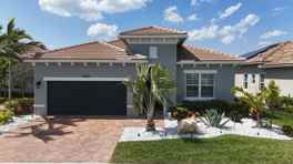 Enjoy resort style living in the vibrant 55+ community of Cresswind. This fully furnished 2 bedroom + den, 2 bath, 2 car garage home is the perfect rental. Step into your own backyard oasis. Relax by the private pool, fire up the outdoor kitchen, catch a game on the TV and enjoy the comfort of a retractable screen that encloses the covered patio. Inside there is an open and spacious floor plan, impact glass windows and doors and a fully stocked kitchen. Kitchen has 42'' white cabinetry, granite countertops, stainless steel appliances, a walk-in pantry and a breakfast bar.