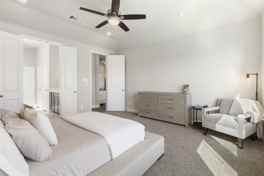 This 1 Story Beazer McKinney FloorPlan has no back neighbors and is loaded with upgrades. Located on the greenbelt with a view of the lake, it features 4 Bedrooms 3.5 Bath, Flex Space/Media room and a dedicated office space. 2 car garage with an extra 5ft ext with EV charger, storage racks, and epoxy floors. The home has 12 ft ceilings, lots of natural light, chef sized kitchen with Quartz counters, Convection oven, Gas Cooktop with griddle, pots/pan drawers, double trash can pullout, pop up receptacle on island, reverse osmosis and tons of storage. Open concept living with Kitchen/Dining/Family room. Mavera is a master planned community with parks, lakes, walking paths, resort style pool and splash pad, covered pavilion, Wiffle Ball Field, 2 Pickleball Courts, and Outdoor Biergarten. Sprinkler system, brand new elementary and middle school.