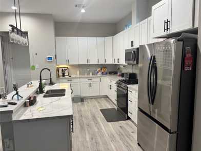 Are you looking for a nice place to call home? This gorgeous 2 story modern farmhouse features a gated walkway to the front door and high ceilings as you enter the living area which is open to the kitchen. The kitchen features quartz countertops and Samsung stainless steel appliances, 2 car garage, spacious bedrooms upstairs, a relaxing backyard and much more including a fridge, washer, dryer, 2 mounted tv's, dining set, 2 bed frames, much more to make this a wonderful place to call home.