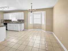 Updated Kitchen: Features bright white cabinetry, stone-look countertops, a tiled backsplash, and a full stainless steel appliance package.