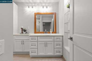 This Upper Sequoia Wrap model is in the Premiere 55+ Active Adult Community of Walnut Creek. This two bedroom, one bath, upper unit has a wrap-around deck with plenty of sunshine and room for multiple seating areas. Elegantly renovated throughout with new lighting, fixtures and finishes. The renovated kitchen features a gas stove, new cabinets, counter tops and backsplash. Also includes a granite-topped island with seating. The the bathroom includes new cabinets, lighting and a large glass enclosed steam shower. All glass windows and doors have been replaced and the electrical panel has been upgraded. Come and see all the improvements made.