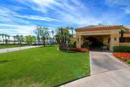 Annual lease in Sun City, the premier 55+ community in Palm Desert. This rare Solitair model has over 2100 square feet with 12 foot ceilings, a kitchen family room combination and breakfast nook overlooking the private park like fully fenced back yard. Nicely landscaped rear patio with shady covered area. Brand new decorator paint, coordinated new carpet, and wood look tile floors in all traffic areas. The huge garage is bigger than some houses with a wall of cabinets, storage shelves and an extra fridge included. The large laundry room has a wet sink and even a garden window for your indoor plants. Formal Living/Dining room with special ceiling touches and another view of the yard and patio. The primary bedroom with massive organized closet and private zen patio, large shower and jetted tub compliment the double sink/make up table. The guest wing has a beautiful front den/study/bedroom overlooking the front courtyard, With a bathroom and linen closet between another bedroom overlooking the rear patio with a fantastic custom closet. Ceiling fans throughout dual AC recently replaced for trouble free comfort. Titanium Security maintains the complex with three 24/7 patrol vehicles in addition to front and rear maned gates in addition to 3 automated entrances. This home is just a walk away from the remodeled clubhouse, tennis and pickleball courts and the outdoor sports pavilion. Three clubhouses, 4 pools (one indoor) two fully equipped fitness centers one with an indoor track for year round exercise keep you in shape. Two championship golf courses, two pro shops, 20 station driving range (balls included), world class practice facilities, and a natural grass putting course rounds out the golf. 80 clubs that will keep you busy, three restaurants (one is a brand new sports bar) to keep you happy and well fed, a 200 seat movie theatre and a 600 seat playhouse/ballroom with entertainment fit for royalty. Be as busy as you like or enjoy the ultimate relaxing home and yard. Welcome