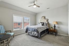 Experience refined living in this elegantly upgraded residence nestled within the highly acclaimed Prosper ISD. From the moment you enter, the soaring two-story foyer creates a dramatic first impression, leading you into a light-filled, open-concept floor plan designed for effortless entertaining and everyday sophistication. The gourmet kitchen is a true showpiece, featuring premium quartz countertops, custom cabinetry, and top-of-the-line stainless steel appliances that seamlessly blend beauty and performance. The expansive living and dining areas flow together in perfect harmony, enhanced by stylish finishes and an abundance of natural light. A thoughtfully designed first-floor guest suite with a full bath offers both comfort and privacy—ideal for visitors or multi-generational living. Outdoors, a covered patio and serene backyard retreat invite alfresco dining, relaxation, and quiet evenings under the stars. Every inch of this home reflects a commitment to luxury, functionality, and modern elegance.