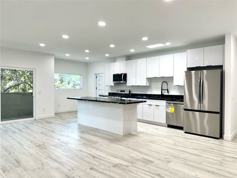 Now available for lease in central Van Nuys, this sleek and modern 3-bedroom, 2-bathroom condo offers 1,121 square feet of stylish living space in a well-maintained community. Recently remodeled, the unit features wide-plank wood-style flooring, recessed lighting, and a bright open layout perfect for everyday living and entertaining. The updated kitchen is a showstopper, showcasing high-gloss cabinetry, striking black stone countertops, stainless steel appliances, and a spacious center island that doubles as a breakfast bar. The living area flows seamlessly to a private balcony with leafy views, offering a relaxing outdoor retreat. Each bedroom is generously sized and filled with natural light, with ample closet space and mirrored doors. The bathrooms are beautifully finished with contemporary tile, modern vanities, and matte black fixtures. Additional highlights include central HVAC, in-unit laundry, and two assigned parking spaces in a secured garage. Located just minutes from local dining, shopping, and convenient freeway access, this move-in ready home is an ideal lease opportunity in the heart of the Valley.