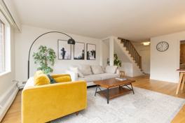 This rarely available townhouse is the perfect rental opportunity for a growing family or a professional couple that has a need for an in-home office space. The large sunny south-facing back deck overlooks a beautiful private setting on mature, manicured garden acreage perfect for children. Every square foot is well utilized in this 2-level property that boasts 3 bedrooms that are all located on the upper level and 2.5 bathrooms.