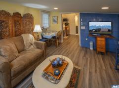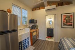Come and see this charming completely furnished studio apartment located within walking distance of downtown. The studio features a Queen sized Murphy bed that can be folded up during the day allowing for plenty of floor space for work or entertaining. The kitchen comes equipped with a full sized refrigerator, dishwasher, convection microwave, cooktop and air fryer. The floors are a very nice laminate plank. The apartment is heated and cooled by a ductless heat pump system for summer and winter comfort. A flat screen TV is mounted on the wall and an alarm system is installed. There is also a covered outdoor sitting area and beautiful gardens to enjoy.