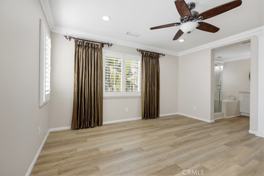 Situated in a clean, well-maintained community, this residence enjoys a private setting along a walkway lined with neighboring homes and lush greenery, creating the feel of a quiet corridor leading to the entrance. Inside, newly replaced wood flooring extends throughout the main level, complementing the home’s bright and inviting atmosphere. The main living area opens into a connected living, dining, and kitchen space, each section subtly defined by graceful archways. The dining area, centered beneath an elegant chandelier, sits between the living area and the well-appointed kitchen featuring white cabinetry, granite countertops, and a spacious pantry. Sliding glass doors off the dining area open to a paved patio, ideal for outdoor lounging or dining. Additional highlights on the first level include direct garage access, where the laundry area and added storage space are located. Upstairs, a full bathroom serves two secondary bedrooms with closet space, along with an additional hallway storage closet. The primary suite offers a large closet and an ensuite bathroom complete with a soaking tub and glass-enclosed shower. Equipped with solar panels, this home combines modern efficiency with comfort and thoughtful design. Conveniently located near the Marketplace Shopping Center and assigned to excellent schools, it offers an ideal blend of lifestyle, location, and livability in the heart of Irvine.