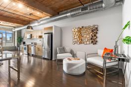 With expansive view of the downtown LA skyline is this west facing industrial live/work loft with a BALCONY in the Arts District. Century old wood beams and posts, high ceilings, concrete framed wall of windows, dark wood floors throughout. Chef's kitchen with stainless-steel appliances: refrigerator, gas cooktop and oven, dishwasher, and microwave. Inside laundry with newly installed washer and dryer, one gated attached covered parking with EV charger, and 24/7 security on site. A resort style roof top, equipped with a heated pool, spa, BBQs, cabanas, fire pits, fitness center, and a 360 degree of spectacular views of the horizon, complete this swanky urban living with luxury. Proximity to countless popular eateries (Bavel, Girl & the Goat, Manuela), coffee houses (Verve, Blue Bottle, Urth), museums and galleries (Hauser & Wirth and more), and The Arts District Park. Conveniently located just minutes away from the Metro and train stations, and a quick hop onto all major Freeways.