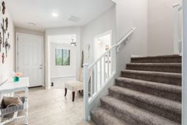 The inviting living and dining areas flow seamlessly. Den on the main level is ideal for a home office or flex space, along with 1/2 bath.