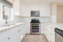 ? Upscale kitchen – stainless steel appliances, double oven, granite countertops, and ample cabinetry.
