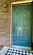 Enjoy the benefits of accessible living with a dedicated entrance right at the front. The warm teal front door welcomes you home, complemented by a stone-paved pathway and a playful black and white checkered welcome mat that adds personality to your entryway.