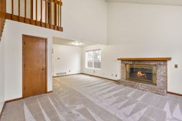 Interior has gas fireplace, whole house fan, A/C, vaulted ceilings, finished basement with great shelving on one wall.