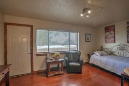 This updated studio apartment offers efficient, modern living within a secure gated community in Northeast Albuquerque. The unit features an open studio layout with a combined living and sleeping area, one full bathroom, and approximately 419 square feet of interior space. The interior includes updated flooring throughout, a modern kitchen equipped with granite countertops, stainless steel appliances such as a refrigerator, range/oven, microwave, dishwasher, and disposal. A private covered balcony provides additional outdoor space. The home is equipped with forced-air natural-gas heating, refrigerated air conditioning, and double-pane thermal windows. The building was constructed in 1978 and has been well maintained. Rental comes with one covered and reserved carport space.