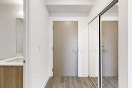 Brand new, never-lived-in 1-bedroom, 1-bath suite in the heart of Mississauga's Square One District. This bright, modern unit features an open-concept layout with floor-to-ceiling windows, wide-plank flooring throughout, and a sleek contemporary kitchen with integrated appliances, quartz counters, and a built-in island. Both bedrooms are spacious with large closets and expansive windows offering beautiful city views. The primary bedroom includes a private ensuite, while the second bathroom is conveniently located off the main living area. A full-size washer and dryer are tucked neatly away, and the private balcony extends the living space outdoors. Located in a brand-new building with premium amenities, within walking distance to Square One Shopping Centre, restaurants, parks, and transit. Tenant pays all metered utilities. All measurements and areas are approximate; please verify all dimensions and details independently.