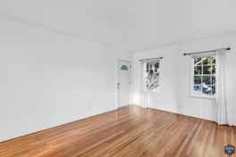 Tucked inside a quaint, well-maintained complex with a white picket fence and lush greenery, this 2-bedroom, 1-bath unit blends vintage character with thoughtful updates. You’ll love the gleaming hardwood floors in the living space, the plush carpet underfoot in the bedrooms, and the sunlight pouring through oversized windows on the top floor.
