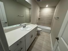 Move-in Special offer, enjoy three months of free electricity and a brand-new 65-inch TV upon lease signing. This brand-new never before lived in two-story home offers four bedrooms and two and a half bathrooms with a spacious and modern layout. The first floor features an open living area, dining space, and a kitchen with granite countertops, stainless steel appliances, and a large island. Upstairs includes a loft area, a master bedroom with a walk-in closet and private bath, and three additional bedrooms. The home comes with a two-car garage, washer and dryer, and energy-efficient appliances. It’s located in a quiet neighborhood close to shopping, dining, and main roads for easy access. We will have maintenance of the property HVAC filter replacements, and also pest control. Please note that photos are illustrative purposes, actual build may vary. Schedule a viewing today and be the first to live in this beautiful new home!