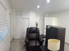 Clean and functional unit with tiled floors, recessed lighting, and a practical layout. Features a classic kitchen with white cabinetry, pass-through window, and essential appliances. Includes a full bathroom, utility room with shelving, built-in A/C units, and generous closet space. Bright, move-in ready, and easy to furnish. Association requires a minimum credit score of 660. Initial lease is 6 months, renewable to a 1-year contract. Ideal for comfortable living in a quiet, well-maintained community.