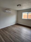 There are 3 units on the lot. This house is the original house, located in the back of the property, behind the front 2-story house and Junior ADU, and is accessible via the paved driveway. The house has been fully renovated: new roof, stucco, windows, doors, new electrical, plumbing, tankless water heater, LED lighting. Open kitchen with formica counter tops and island, refrigerator, dishwasher, gas range/oven. New bathroom. Laminate flooring throughout. Stacked washer/dryer hookups. Master bedroom has a walk-in closet. Gas fireplace in the living room. Large fenced private yard. Off-street parking.