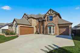 Nestled in the prestigious Dove Chase community of Mansfield, this immaculate luxury residence, built in 2022, presents an exceptional opportunity for discerning buyers. With 4,115? sq? ft of thoughtfully designed living space, this 5? bedroom, 4? full bath, 2? half bath home offers a spacious and refined lifestyle. From the moment you arrive on the curved driveway of the three-car garage, you’ll sense the premium quality and meticulous care that define this home. Step inside to discover soaring ceilings and an open-plan living area anchored by a gas fireplace next to dramatic two-story windows — the perfect setting for both extravagant entertaining and comfortable everyday living. The gourmet kitchen features quartz countertops, a large center island with bar seating, a gas cooktop, and a breakfast nook with sunlit garden-views; a formal dining room lies just off the kitchen with a Butler Pantry between them, ready for elegant occasions. A dedicated media room with projector and screen and separate game room provide next-level entertainment options, while a versatile flex space offers room for a home office or study. Just off the living room is the oversized primary suite, where you’ll find a cozy fireplace, large windows, dual vanities, and ample closet space — a private sanctuary made for luxury and comfort. Retreat upstairs to four additional bedrooms and a Game Room and Media Room. All major appliances and select TVs remain with the property, making this a truly move-in-ready option. Outdoors, the covered patio overlooks a low-maintenance yard with generous room for recreation or quiet relaxation. Located in Dove? Chase, the home benefits from lush landscaping, parks, and ponds that define the neighborhood’s appeal. With easy access to Hwy 287 and Hwy 360, and close proximity to destinations like Joe Pool Lake, this home offers outstanding convenience and recreation options.