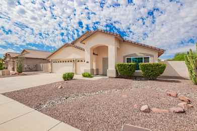 **All Utilities Included ** One-story, 4-bedroom, 2-bathroom home located in the beautiful Arrowhead Lakes community. This well-maintained property offers great curb appeal, a low-maintenance desert landscape, and a spacious 3-car garage. Interior highlights include plantation shutters throughout, R/O water system, water softener, ceiling fans, Sun Tunnels, and washer/dryer. The family room features soaring ceilings, recessed lighting, and a cozy fireplace. The open kitchen is equipped with stainless steel appliances, a gas stove, granite counters, and an island "perfect for everyday living and entertaining. The primary suite offers a walk-in closet and a full ensuite with dual sinks. Enjoy Arizona living in the charming backyard with a covered patio, raised garden bed, and mature citrus trees. Community includes amazing water features and holiday events.