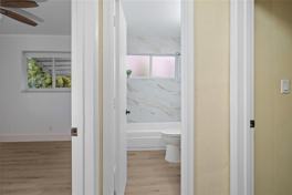 Very quiet street in the Mainlands of Tamarac. 55+ community. One occupant must be 55 and over. Home has a newer roof, newer attic insulation and new AC ducts. One full bath and the other bathroom does not have a shower. The kitchen is GORGEOUS - soft close cabinets and drawers, quartz countertops, recessed LED lighting, and a modern subway tile backsplash. The entire home has luxury vinyl plank flooring which is 100% waterproof. – the flooring is beautiful! Home has a transferable Termite warranty! New gutters, updated electric panel, and IMPACT windows. Stacked washer and dryer unit is located on the outside covered patio area. No Children under 18. Yes, the HOA does require a 730 Credit Score(TransUnion). See MLS attachments.
