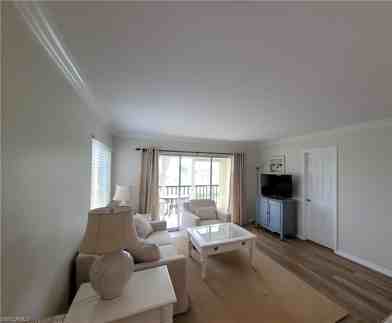 Gorgeous sunsets from this second-floor end unit which overlooks the golf course. Southern and western exposures with abundant of natural light and privacy. This unit has been updated with luxury vinyl plank flooring and bathrooms. Decorated with coastal charm, centrally located in Naples minutes from the Gulf of Mexico, major retail stores and arts & culture district. Basic Cable and wi/fi included in rent. Anything additional is at renter's expense. Tenant pays full electric. This condo is currently furnished, can be provided without furnishings. Laundry is located in unit. One assigned covered parking space, plus guest parking. One storage unit on the same floor. This is an annual lease. Seasonal lease available upon request. Contact agent.