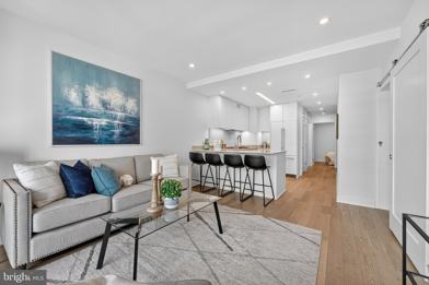 **Reduced security deposit! Open House Sat 12/6, 1-3pm** Stunning "like-new" 2-bed, 2-bath luxury condo perched on the 7th floor of the sought-after Kennedy on L, ideally situated in The Ballpark District and just moments from The Wharf, Navy Yard, and the vibrant Capitol Riverfront. Step inside to find wide-plank wood floors, soaring ceilings, recessed lighting, and luxurious finishes throughout. The Chef's kitchen is a true delight, featuring sleek white cabinetry, stainless steel Bosch appliances including gas cooking, and a custom-paneled refrigerator for a seamless, modern look. Designed for both comfort and entertaining, the open layout offers bar seating at the peninsula overlooking the spacious, light-filled living room, and access to a private balcony through a dramatic floor-to-ceiling door-perfectly blending indoor and outdoor living. Behind a modern barn door, the generous owner's suite boasts a walk-in closet and a spa-inspired en-suite bath complete with a floating quartz-topped vanity and a tiled walk-in shower with frameless glass doors. A second bedroom-perfect for guests or a home office-offers its own walk-in closet and is conveniently located adjacent to the second full bath with tub/shower combo. Additional highlights include an entryway coat closet, custom built-in shelving, and an in-unit laundry closet with a full-size stacked washer and dryer. Built in 2021, The Kennedy on L offers an impressive array of amenities, including secure lobby access, package concierge, NordicTrack exercise bike room, a private club room, onsite pet spa, and a sprawling rooftop terrace with breathtaking views of the Potomac River and downtown DC. Perfectly positioned, this building is just blocks from Navy Yard Metro (Green Line), Harris Teeter, Nationals Park, The Yards Park, The Wharf, and all the dining and shopping the bustling Ballpark District has to offer. Don't miss this!