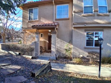 NEAR THE WORLD ARENA -2 bedroom, plus office/bonus room, 2.5 bath, 2 car garage condo. As you enter this home you are greeted by wood floors throughout the main level. A generous living room with a gas fireplace, dining area, kitchen with stove, refrigerator, dishwasher, and powder room. Access to the enclosed patio area just off the living room. Upstairs the hardwood floors continue, along with the primary bedroom featuring a full bath, and walk in closet. An additional bedroom, an office (possible 3rd bedroom), and a full bath along with the laundry closet with hookups complete the upper floor.