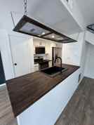 Welcome to this stylishly updated 2-bedroom, 1-bath condo located in the heart of Palm Desert in the desirable community of Indian Creek Villas! This modern two-story home features sleek wood-style flooring throughout, a freshly remodeled kitchen with stainless steel appliances, black fixtures, and warm butcher-block countertops. The open-concept living area is highlighted by a striking white brick accent wall and contemporary staircase railing, offering a perfect blend of comfort and character. Enjoy mountain views and easy access to local hiking trails just steps from your front door. Upstairs you'll find two spacious bedrooms, each with ceiling fans and ample natural light. The shared garage and on-site laundry add convenience to everyday living. Perfectly situated near shopping, dining, and outdoor recreation — this home is ideal for those seeking a clean, modern space in a prime Palm Desert location.