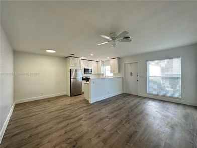CHARMING, SPACIOUS 1 bed/1 bath apartment in a beautiful complex! Top to bottom, completely remodeled!! Unit features brand new, large kitchen w/ granite counter tops, ss appliances & wood flooring throughout. Central AC, impact windows & plenty of closet space! 1st floor unit w/ access to outdoor area. Includes 1 assigned parking space right in front. Property is well maintained & has a nice community courtyard/garden area - great for pets. Laundry is on site. Maintenance, water, waste, sewer, pest control included in rent. Centrally located, great parks & schools nearby. Walking distance to shops, restaurants, Downtown Hollywood, Hollywood Art Walk, Hollywood Beach Golf Club, Young Circle Park, Major highways such as A1A, US1, I-95 etc. 10 mins from Hollywood Beach! Handicap Accessible.